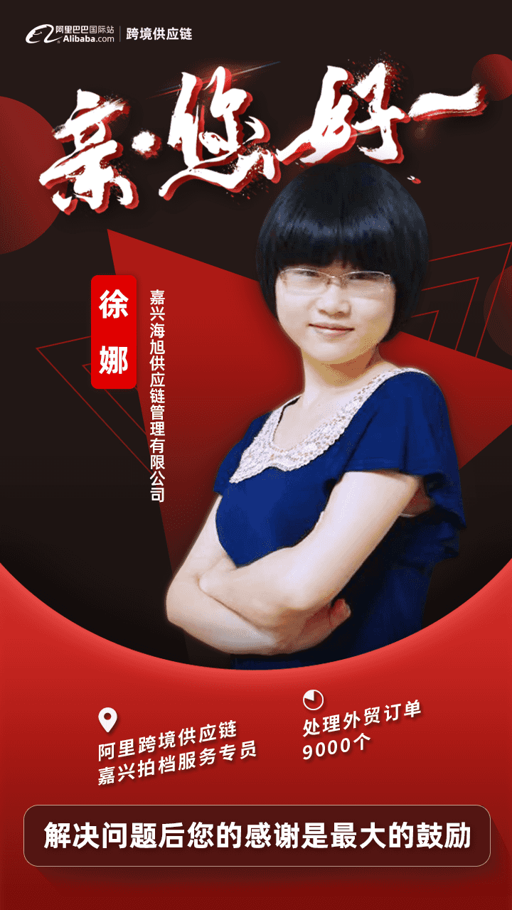 徐娜,嘉兴海旭供应链管理有限公司(下文简称海旭供应链)的服务小二,主要工作是为嘉兴做外贸的企业处理通关、收汇、退税、信用保障、物流和金融等各方面的异常,她的另外一个标签是阿里巴巴跨境供应链拍档服务小二服务质量满分客服。