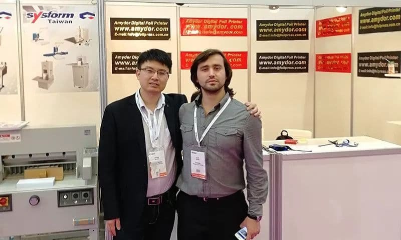 答:我们主要做印刷和数码烫金设备的生产,属于包装印刷机械行业。用途是无需制版,就可以通过电脑和机器转印把烫金印在产品或包装上,科技含量还是很高的,用途也很广泛,在海外很受欢迎,目前我们的客户来自100多个国家和地区,以欧美客户居多,南美、非洲、澳洲也有不少。