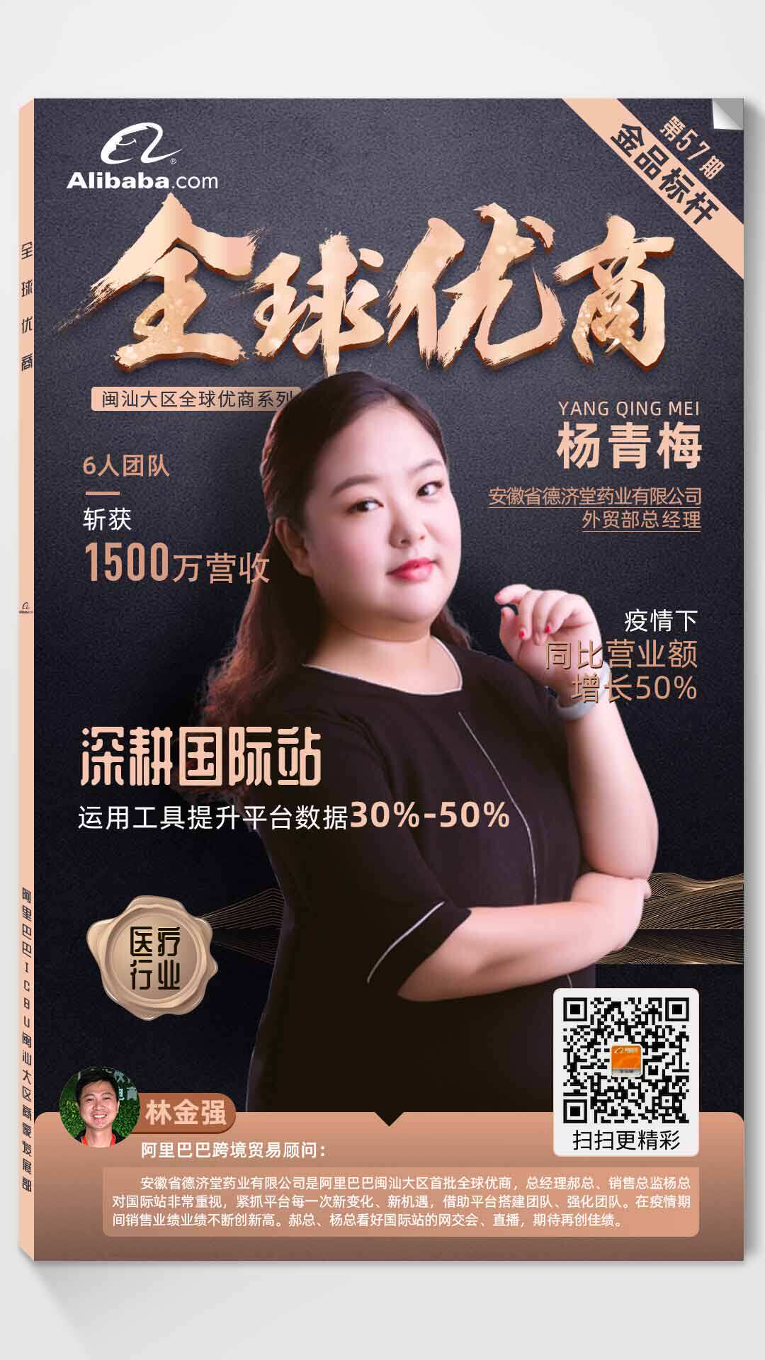 安徽省德济堂药业有限公司是跨境电商平台阿里巴巴国际站闽汕大区首批全球优商,总经理郝总、销售总监杨总对阿里巴巴国际站非常重视,紧抓平台每一次新变化、新机遇,借助平台搭建团队、强化团队。在疫情期间销售业绩业绩不断创新高。郝总、杨总看好阿里巴巴国际站的网交会、直播,期待再创佳绩。
