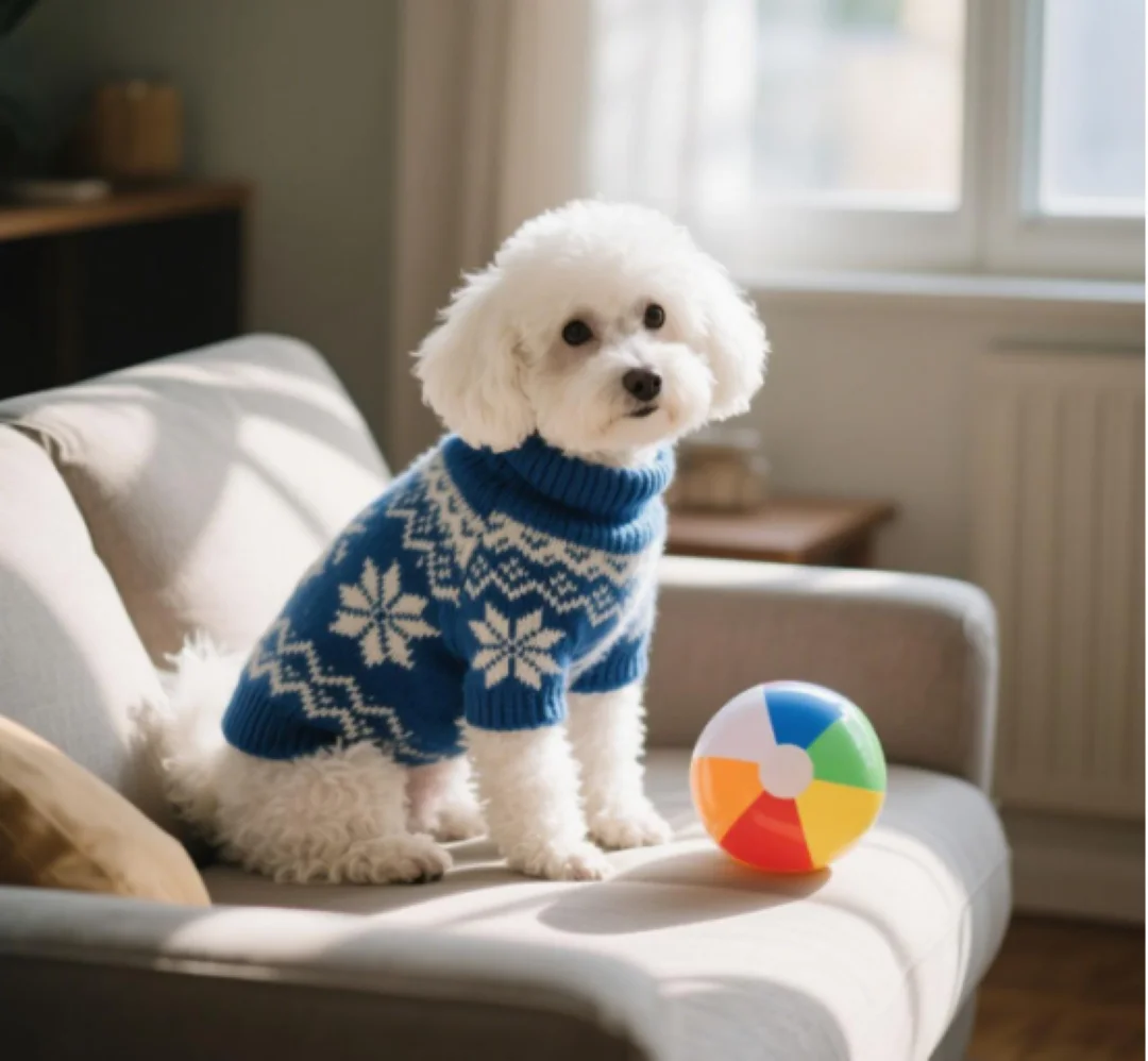 产品穿戴场景:展示宠物在日常、节日、运动等不同场景下的穿戴效果,如猫咪穿着圣诞主题毛衣、狗狗佩戴发光牵引绳在夜间散步。