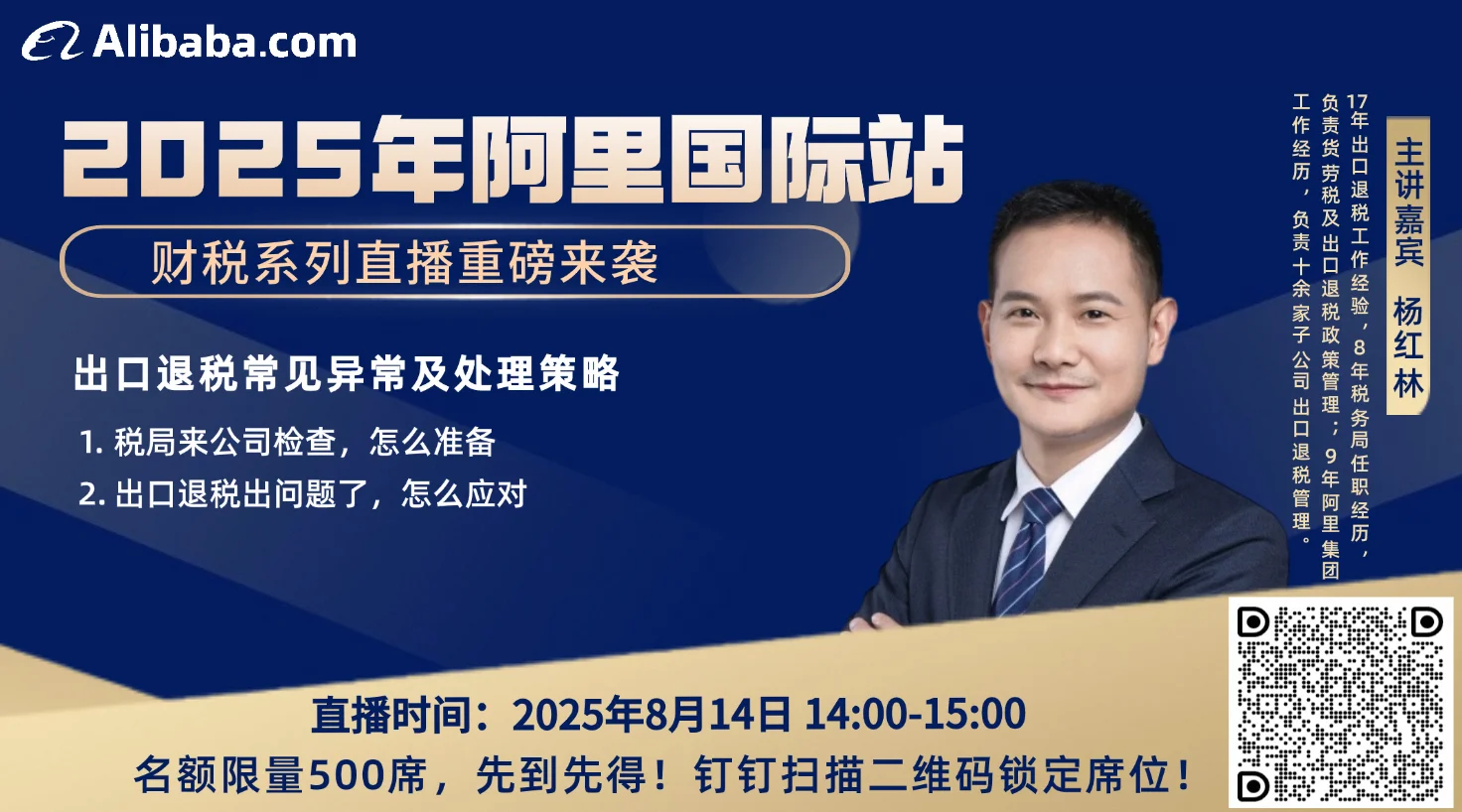 ✅本周四下午14:00,阿里国际站财税系列直播第 14期! 阿里国际站财税专家-杨红林(原税局退税审核老师)给大家分享: