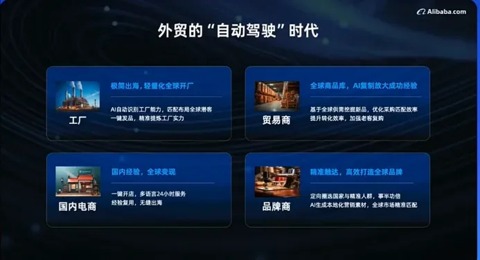 整个外贸的“自动驾驶”时代,我们希望通过AI的能力,帮助无论是小规模的,还是有一定实力的品牌客户,可以真正的通过AI实现一站出海。