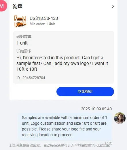 高源的首位客户,是一位来自西班牙的水上用品经销商。这位经销商一上来就向高源提出了严格要求:要300套能够长期暴露于阳光下且高防水高抗晒的帐篷。接到首批订单,曾经作为外贸业务员的小伙并不感到紧张:这不就是老本行吗!况且现在的他还有AI这个得力干将呢。