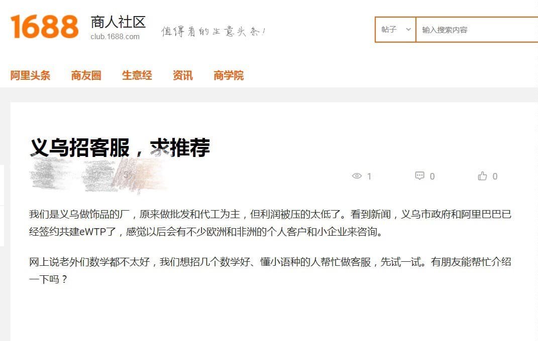 据义乌市政府介绍,此次eWTP合作下的 15个项目,包括金融贸易、科教文卫等,已在全力推进中。义乌商人刘微感慨:“eWTP落地义乌,我们的又一个红利期也要来了!”就在双方签约的第二天,有义乌商家发布信息,对外招聘“数学好、懂小语种”的“eWTP客服”。